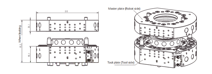 3. Dimensional drawings of LA-RTC300B Robot Tool Changer: