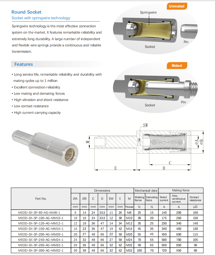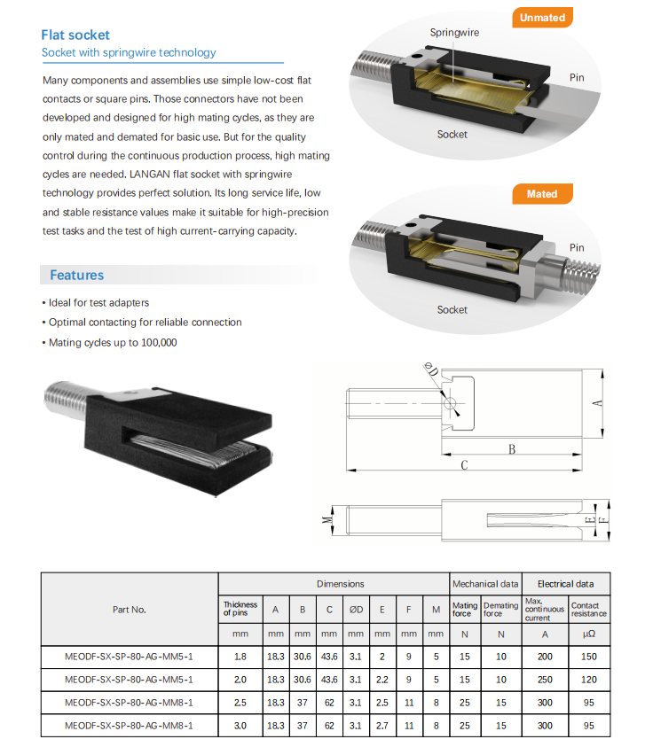 LANGAN® Electrical contacts with springwire technology is a high‑reliability electrical contact designed to mate with electrical pins. It features a precision‑machined body that achieves simultaneous multi‑point contact with internal spring wires. This structure delivers ultra‑stable connectivity, exceptional shock/vibration resistance, low contact resistance, and long life—ideal for aerospace, military, medical, and industrial applications demanding uncompromising performance.
